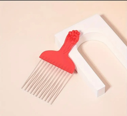 This metal teeth Afro hair comb is for detangling, lifting and styling natural, curl and textured hair.