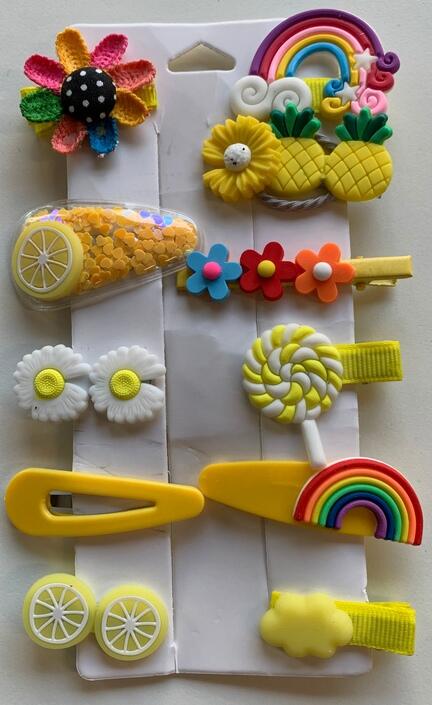 Pift din lilles frisure op med disse søde og legesyge hårspænder! Dette sæt har sjove designs som regnbuer, blomster, hjerter, vandmeloner og meget mere - perfekt til at sætte kulør på ethvert outfit.