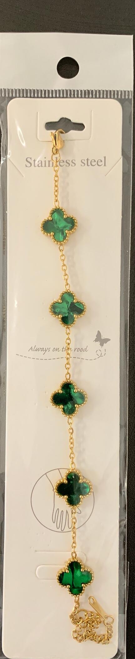 Løft din smykkesamling med Five Flower Double-Sided Bracelet - en perfekt blanding af elegance og holdbarhed. Med fem smukt marmorerede blomstercharms i guldbelagt rustfrit stål giver dette armbånd et sofistikeret look til enhver lejlighed. Det dobbeltsidede design sikrer, at charms-mønsteret er synligt fra alle vinkler, hvilket gør det til et alsidigt og stilfuldt tilbehør.